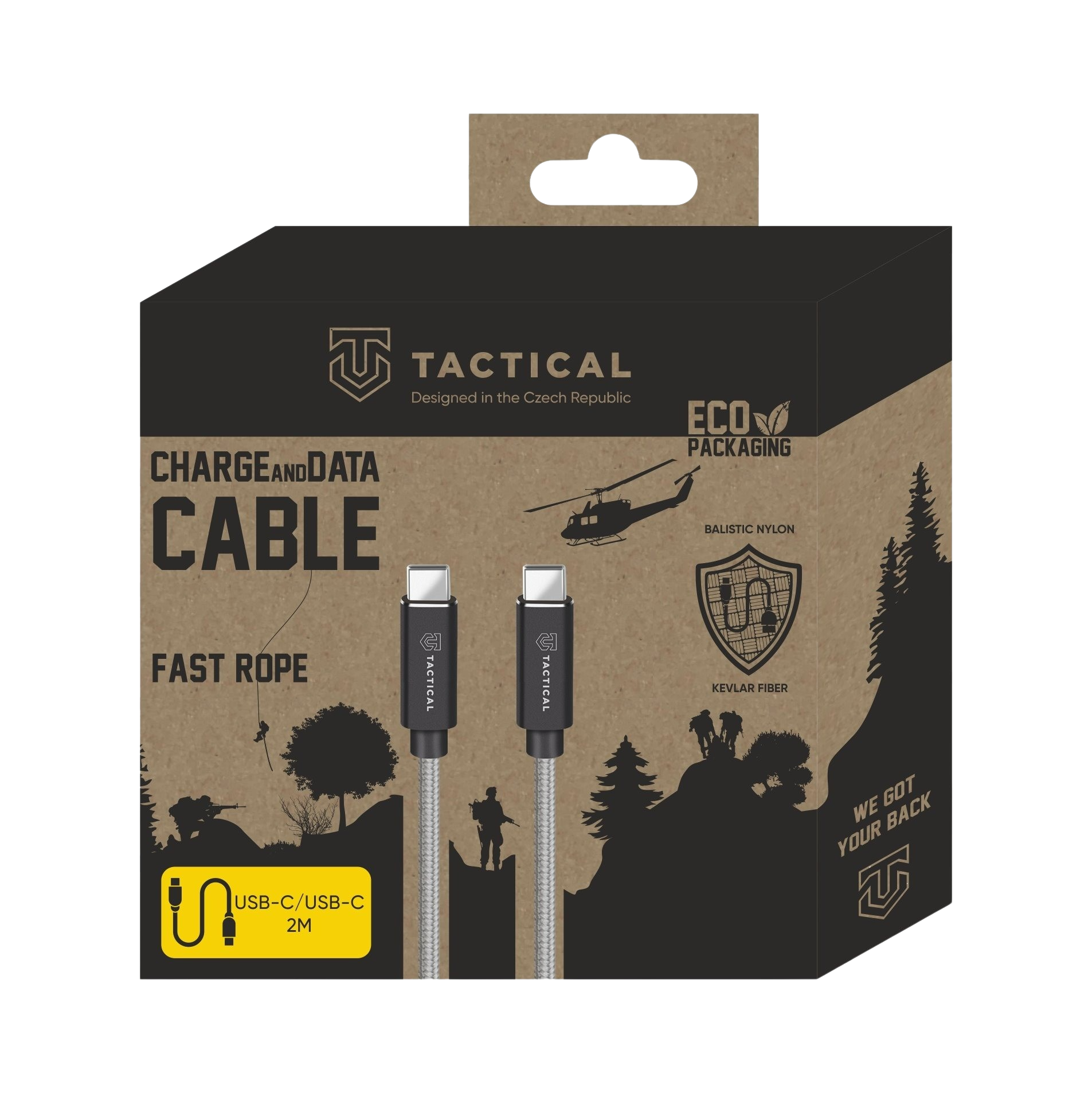 Tactical Fast Rope Aramid Cable USB-C/USB-C 100W 20V/5A 2m Grey